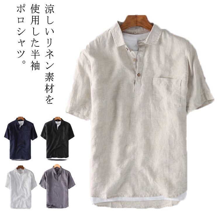 薄手 通気性 半袖 メンズ トップス シャツ シンプル リネン 麻 ポロシャツ メンズファッシメンズファッション トップス ポロシャツ