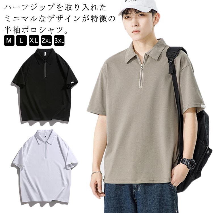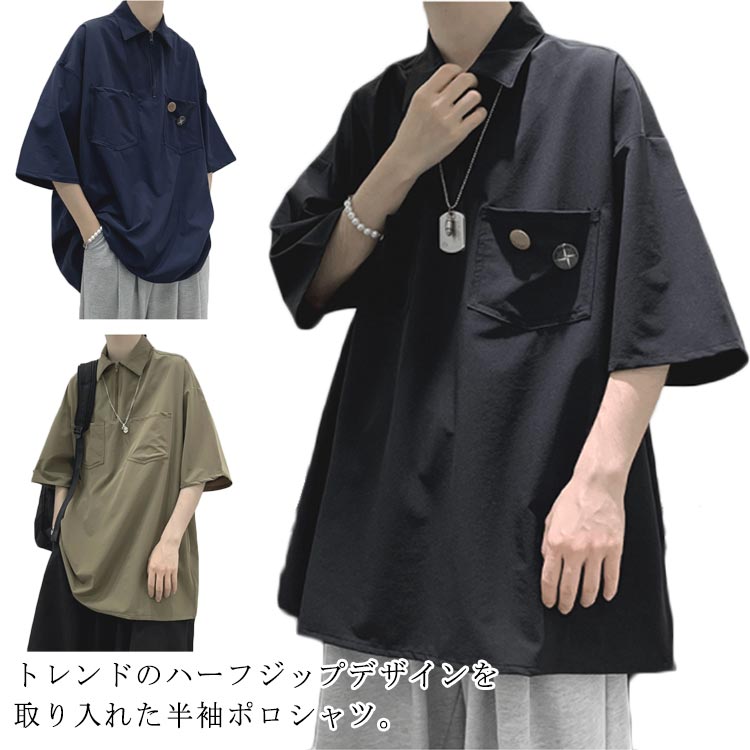 ポロシャツ シャツ ハーフジップ 半袖 メンズ シャツ カジュアル 夏服 かっこいい お洒落 韓国ファッション カジュアルシャツ プルオーバーパーカー