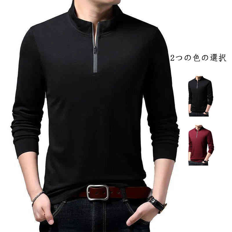 ポロシャツ 長袖 メンズ ポロ 長袖 無地 春 秋 ビジネス ゴルフ ファスナー テニス 紳士服 スポーツ 紳士 細身