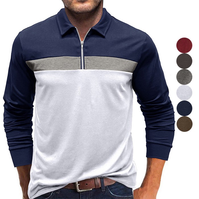 ポロシャツ 長袖 メンズ シャツ ハーフジップ 切り替え ゴルフシャツ 長袖ポロシャツ ポロ トップス 通勤 通学 おしゃれ 春秋