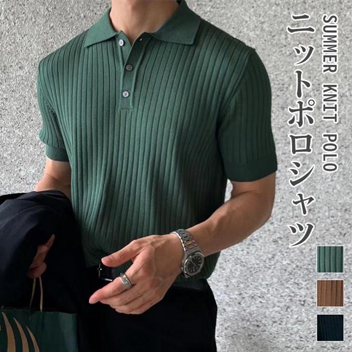 ニットポロ リブニット メンズ ゴルフシャツ サマーニット ポロシャツ トップス カジュアル ポロメンズファッション トップス ポロシャツ