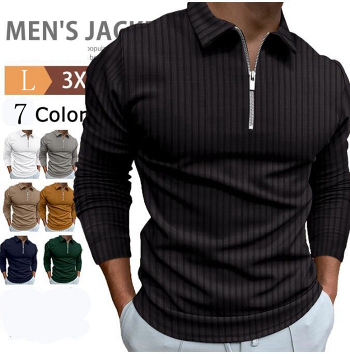 ポロシャツ 長袖 メンズ ポロ シャツ しま柄 長袖 春 秋 ファスナー テニス 紳士服 スポーツ 紳士 ビジネス ゴルフ 細身 新生活