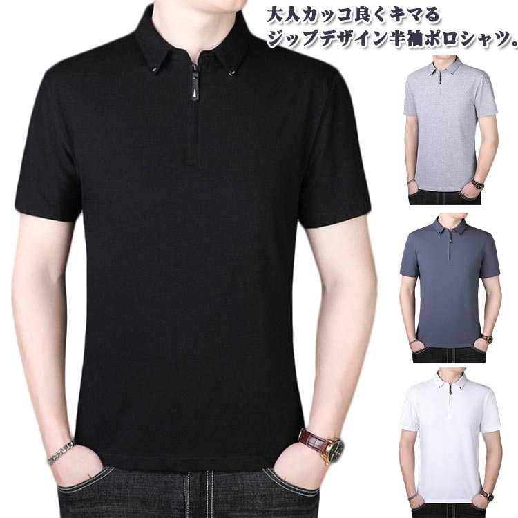 ポロシャツ ハーフジップメンズ 半袖 シャツ ジップアップ ゴルフシャツ 襟付きメンズファッション トップス ポロシャツ