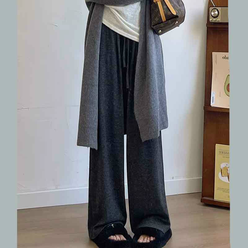レディース伸縮性リブニットストレートパンツワイドパンツ 春秋冬 コーデュロイパンツ ゆったり 無地 ズボン 防寒着 部屋着 ウエストゴム 体型カバー ピンク ブラック