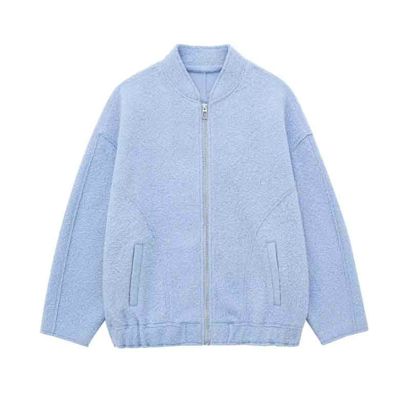 レディース ウールジャンパー ソリッドジップアップフェイクファーコートリースカラーブロックジャケット 長防寒 暖かい 春秋冬 ライトブルー 紺色 ホワイト XS S M L