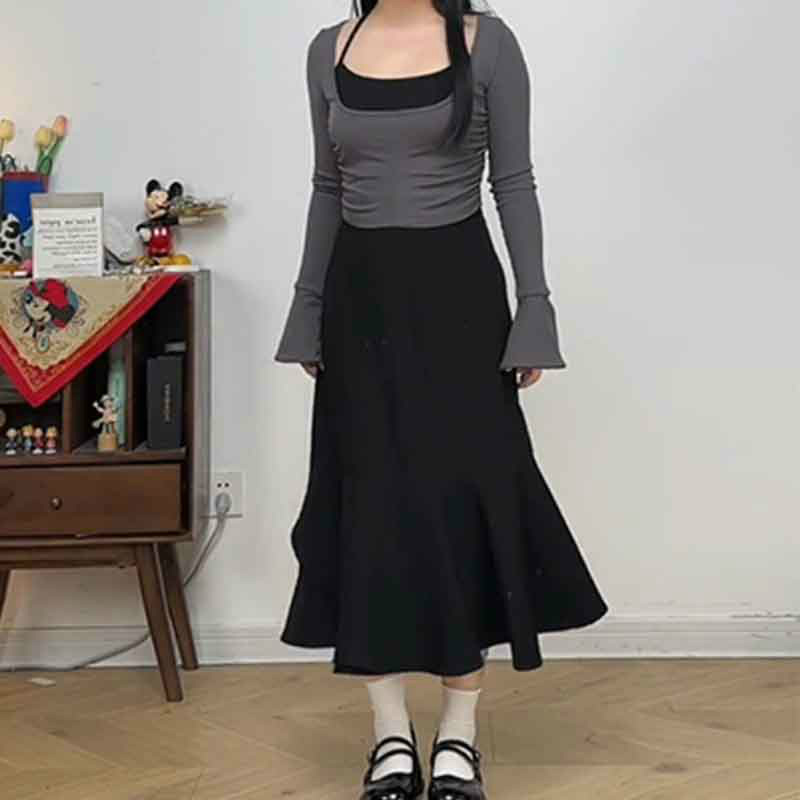 レディース スカート キャミロングワンピースラナテックマーメイドスカートロングスカート ミドル丈 美脚 体型カバー 着痩せ ハイウエストマーメイドスカート細見え 切替 変形