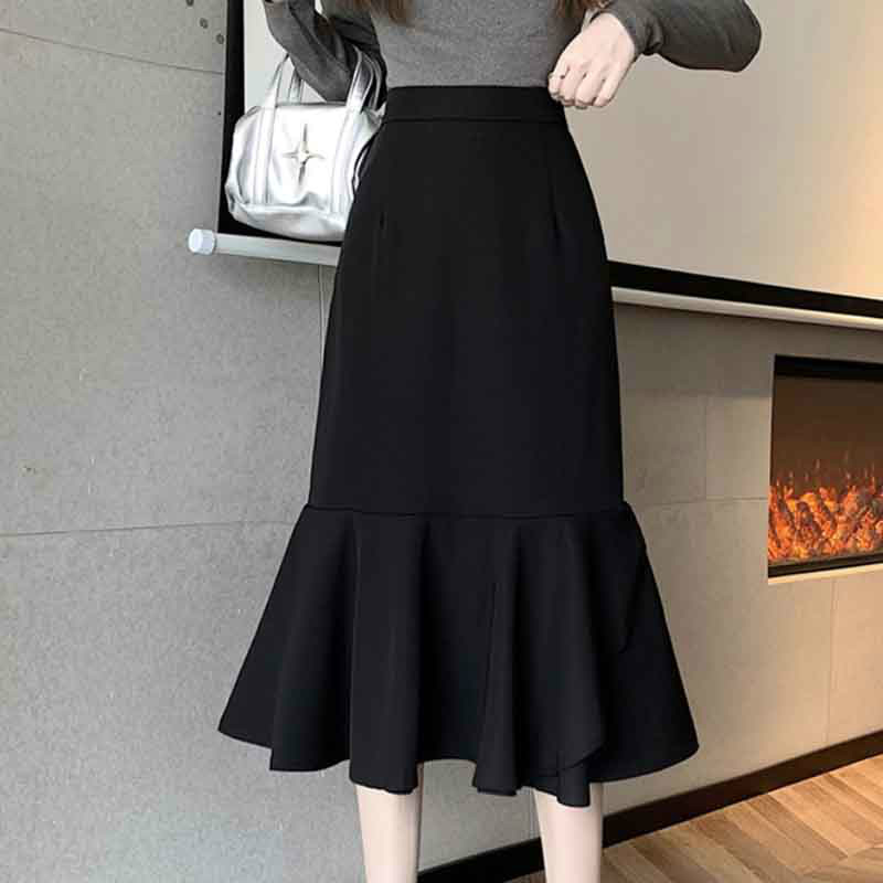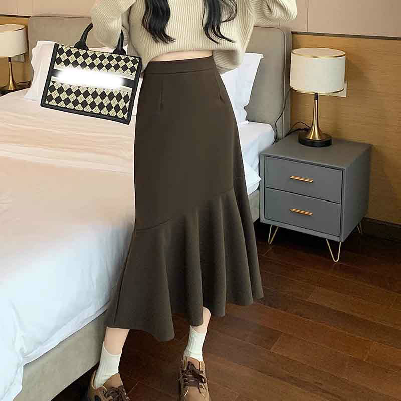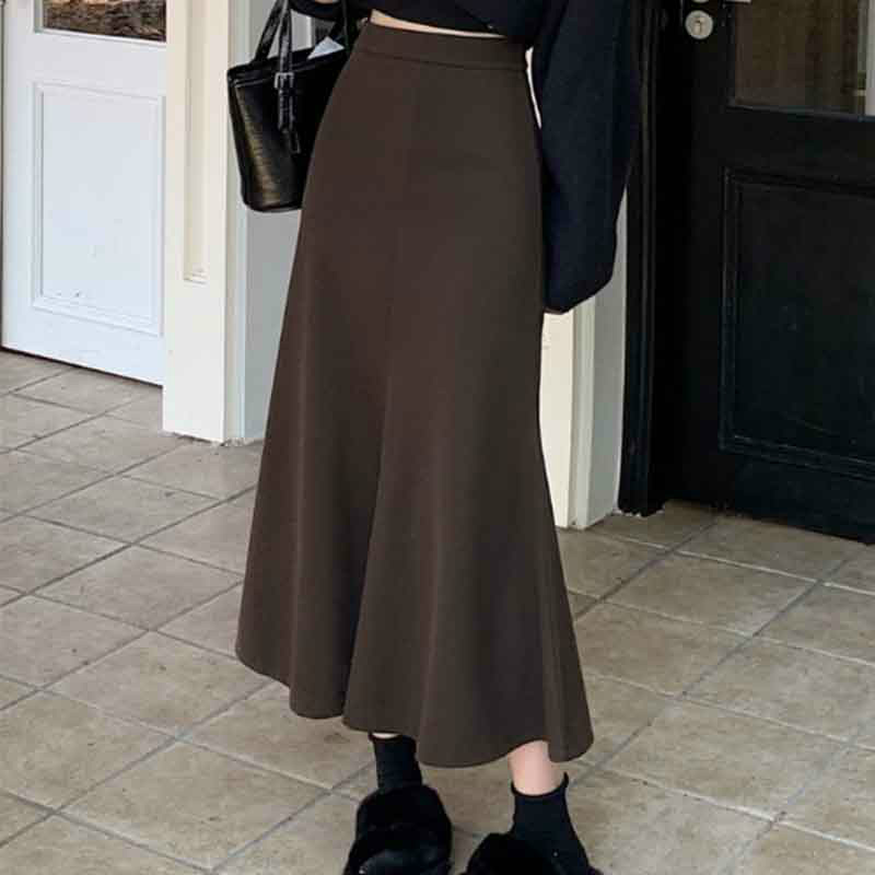 レディース ロングスカートフレアスカートウエストゴム ウールスカート 大きいサイズ 伸縮性ラナテックマーメイドスカート ミドル丈 体型カバー着痩せ ハイウエストマーメイドスカート