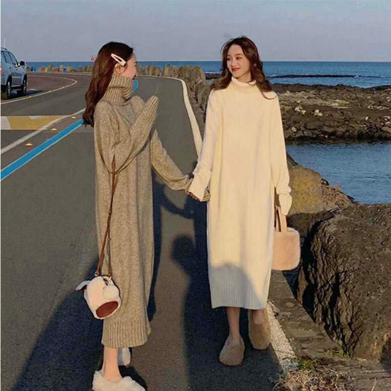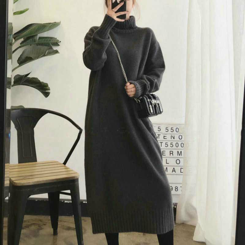 レディース ニットワンピース ロングワンピース セーター 長袖 春秋冬 トップス ハイネック ロング丈 ミモレ丈 体型カバー カジュアル ゆったり 無地 オフィス 着痩せ 通勤