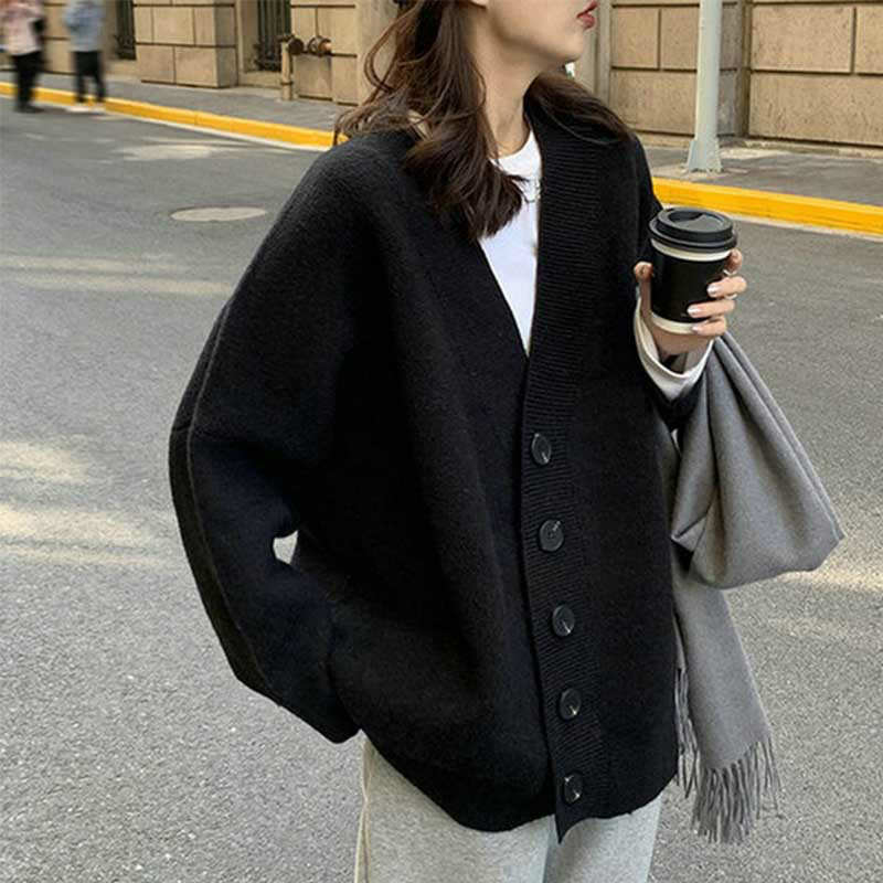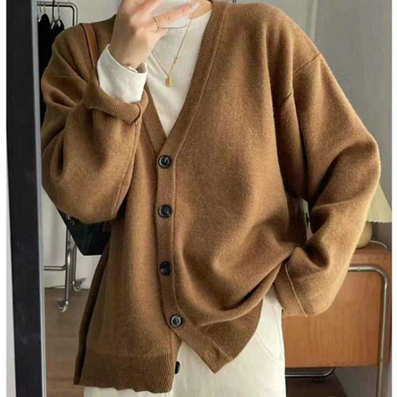 レディース 厚手 ニット Vネック ニットカーディガン 上着 セーター トップス アウター 前開き 羽織り 春秋冬ゆったり 大きいサイズ 原宿風 無地 制服 着痩せ 防寒 長袖