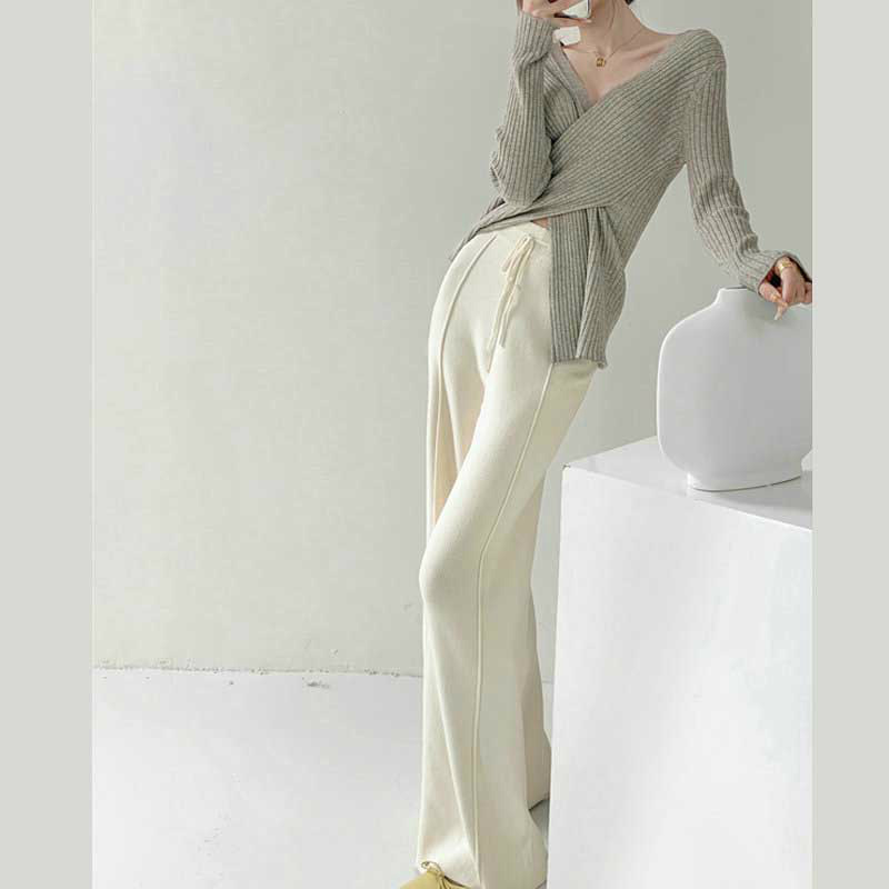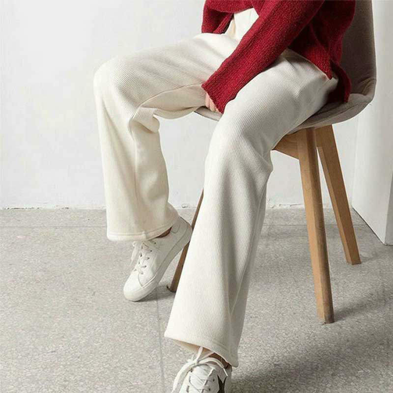 レディース伸縮性リブニットフレアレッグパンツワイドパンツ 春秋冬 ロングパンツ ゆったり ストレートパンツ 無地 おしゃれ ズボン きれいめ 着やせ あったか 防寒着 部屋着
