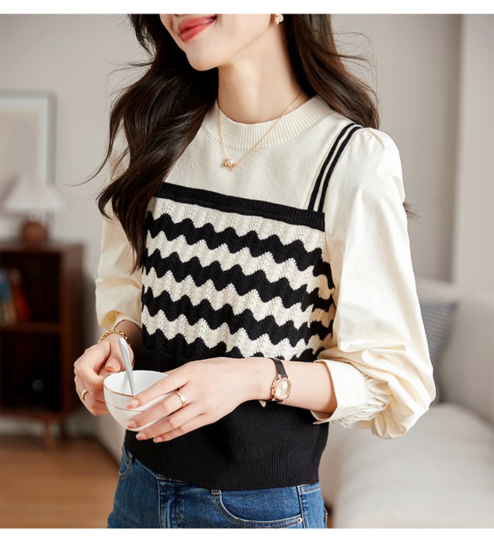 ニットブラウス ブラウス ニットソー レディース 異素材 切り替えデザイン 長袖 女性 秋服レディースファッション トップス ニット セーター セーター