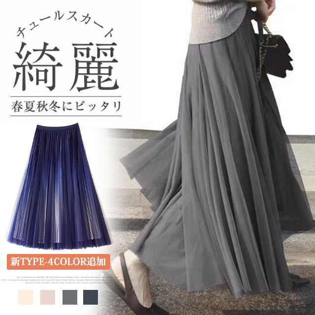 チュールスカート スカート レディース ボトムス マキシ 新type追加 ロングスカート フレアスカート ウエストゴム マキシ丈 ミモレ丈 スカート フリル ボリューム ゆったり 動きやすい