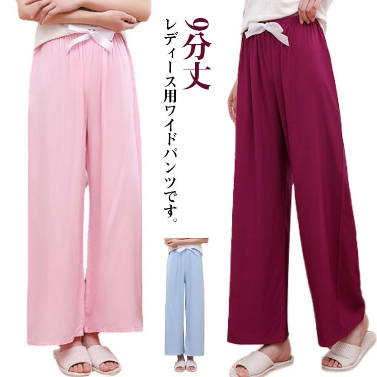 レディース ステテコ 春秋 夏 部屋着 無地 ワイドパンツ パジャマ 秋用 夏用レディースファッション ボトムス パンツ