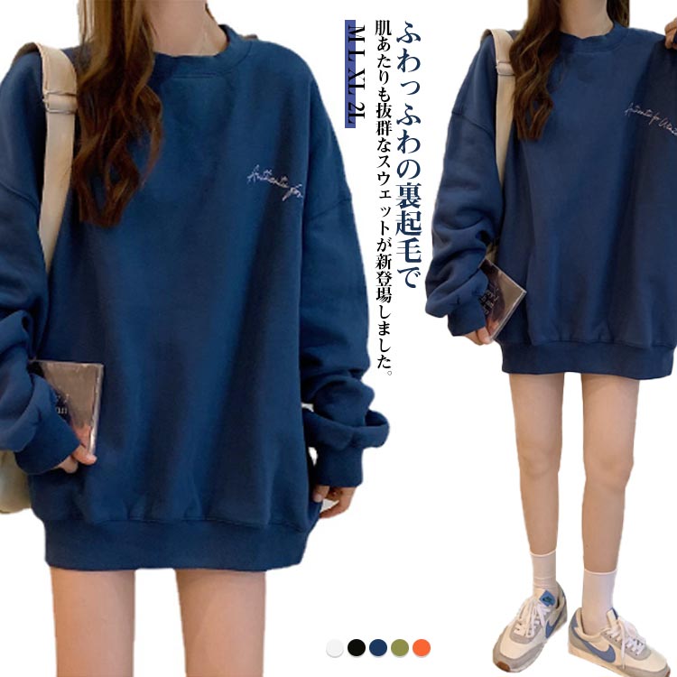 ふわっふわの裏起毛でスウェット トレーナー 秋冬 レディース 大きいサイズ オーバーサイズ ドロップショルダー ゆったり ボリューム袖 20代 30代 40代
