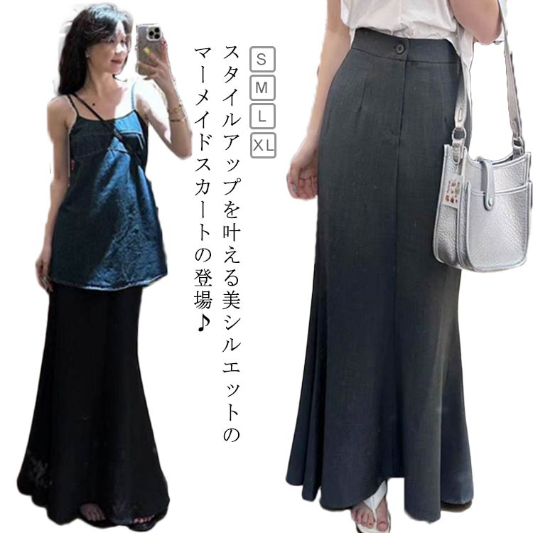 ロングスカート マーメイドスカート マキシ丈 スカート タイト 着痩せ 着心地抜群 美脚ライン 春 夏