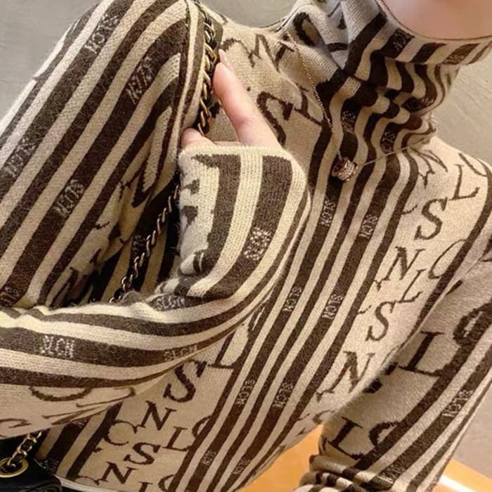 ニット レディース ストライプ ハイネック 春秋冬 長袖 トップス きれいめ カジュアル 通勤 旅行 女子会 お出かけ 母の日 プレゼント 30代 40代 50代 60代 シニア オシャレ 17695