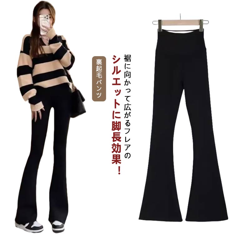 裏起毛 フレアパンツ フレアレギパン ロングパンツ 伸びる 脚長 美脚 ハイウエスト 履き心地抜群 美脚シルエット 冬 細見え 伸縮性