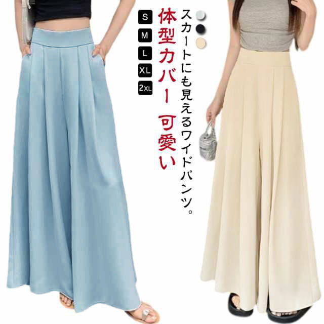 プリーツ スラックス レディース スカーチョ 通勤 ワイドパンツ イージーパンツ タックパンツ ガウチョパンツ フレアワイドパンツ