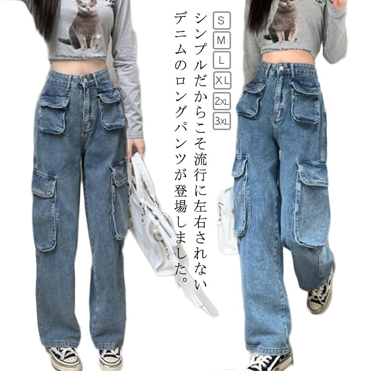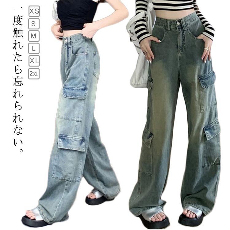 カーゴパンツ カーゴパンツ ワイドパンツ レディース ストレートパンツ デニムレディースファッション ボトムス パンツ