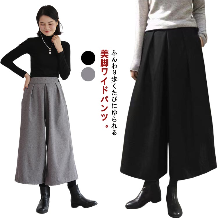 ワイドパンツ ウール調 微起毛 秋冬 あったか ワイド ガウチョ 防寒 ロングパンツ ボトムス アンクルパンツ