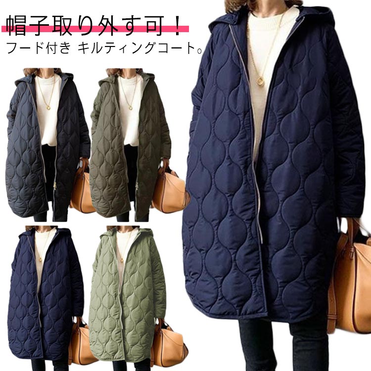 中綿コート 防寒 キルティングコート 秋 レディース 冬 軽量 お洒落 アウター ロングコート フード付き 春