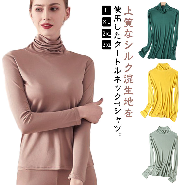 シャツ 絹 タートルネック シルク ティーシャツ ティーシャツ 肌着 冷えとり 汗取り 重ね着 ハイネック