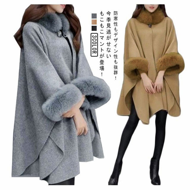 フェイクファー もこもこマント もこもこマント あったか S~5XLレディースファッション コート ジャケット