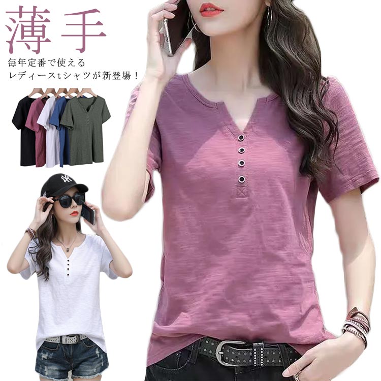 S~3XL 半袖 半袖 着瘦せ ゆったり ミディアム丈 Tシャツレディースファッション トップス Tシャツ カットソー