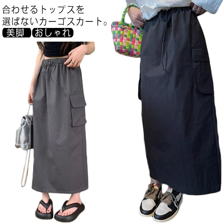 レディース ロング丈 ロングスカート カーゴスカート マキシ丈 無地 ボトムス 大人 女性 ストリート系 カーゴ カーゴ