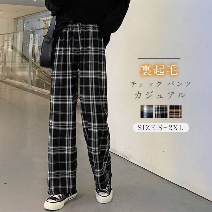 チェック パンツ 裏起毛 秋冬 レディース ワイドパンツ カジュアル 長ズボン 裏起毛 チェックパンツ 美脚パンツ ボトムス 着痩せ 大きいサイズ ハイウエスト ウエストゴム おしゃれ