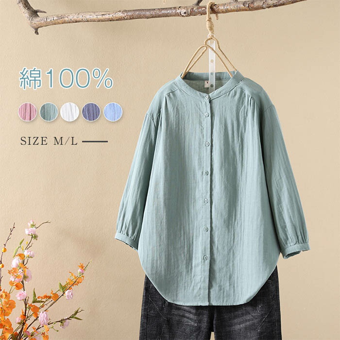 ガーゼ シャツ 2重ガーゼ シャツブラウス レディース 半袖 トップス 春 夏 ガーゼシャツ 羽織り バンドカラー ギャザー 柔らかい 柔軟 大人 カジュアル ナチュラル