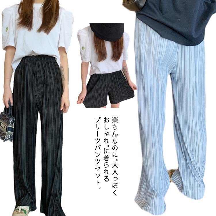 ワイドパンツ ロングパンツ+ショートパンツセット 2点セット レディースレディースファッション ボトムス パンツ