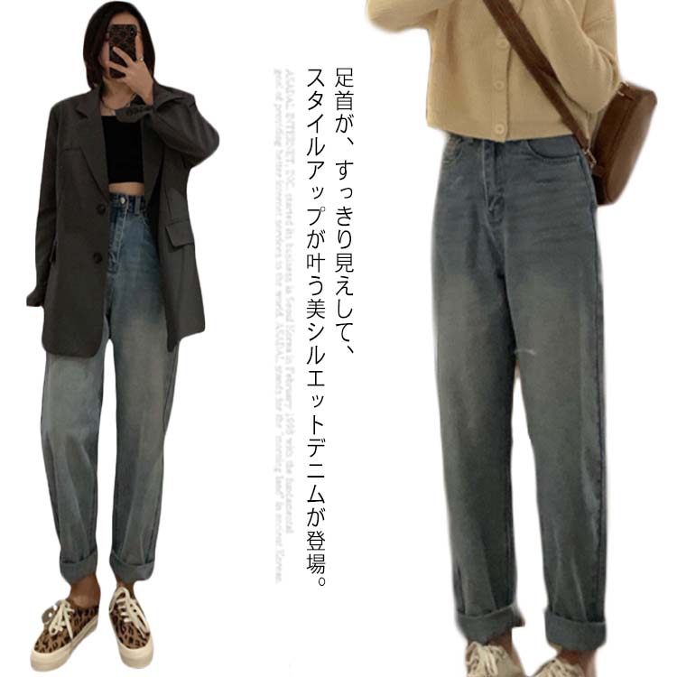 ジーンズ デニムパンツ レディース パンツ ロング丈 ジーパン デニムズボン 着痩せ ボトムス ゆったり ハイウエスト 大きいサイズ 春秋 オシャレ 20代 30代 韓国ファッション 通勤 通学 シン