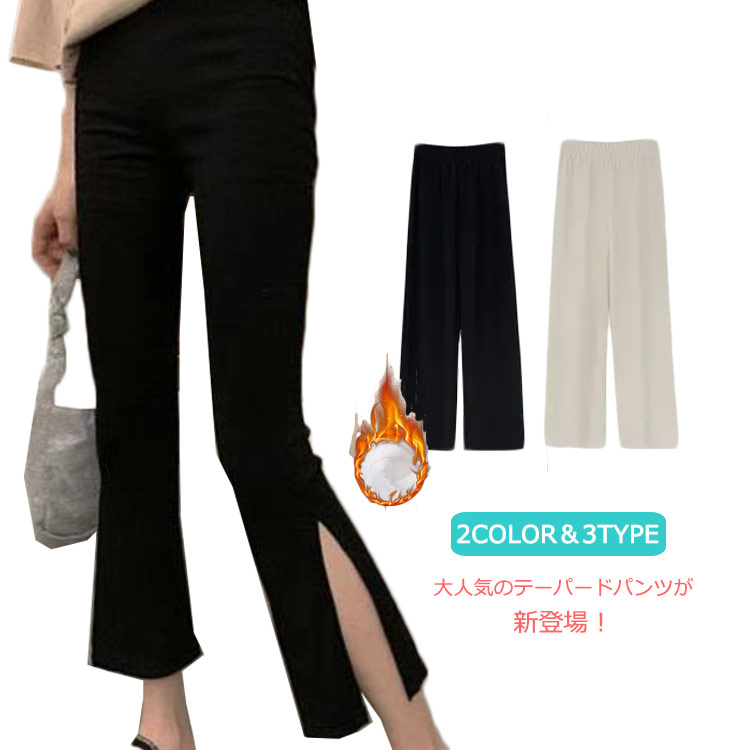 テーパードパンツ レディース ボトムス リブパンツ ロングパンツ ワイドパンツ 厚手 着瘦せレディースファッション ボトムス パンツ