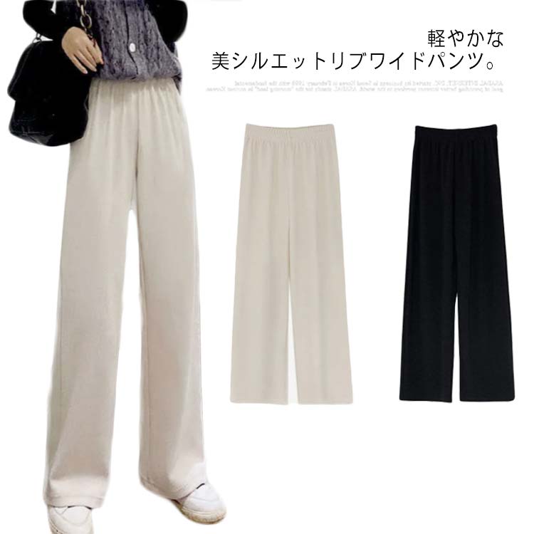 リブ×ワイドシルエット レディース パンツ ボトムス リブパンツ ワイド 大きいサイズ 春秋レディースファッション ボトムス パンツ
