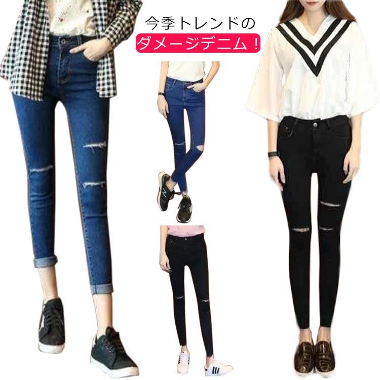 デニム レディース スキニーパンツ ジーンズ 秋 春夏 デニムパンツ レギンス 脚長 ズボン 女性 大人 ダメージ加工 ストレッチ ロングパンツ ジーパン 女性 美脚 細見え 大きいサイズ スリム タ