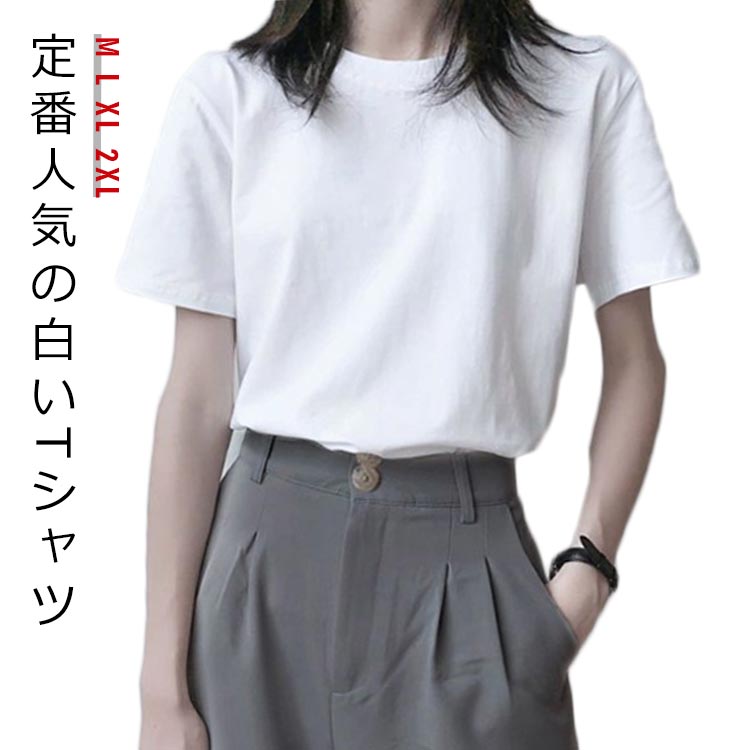 tシャツ カジュアル 通勤 ミディアム丈 定番 白tシャツ カットソー ホワイト シンプル レディース 綿 トップス おしゃれ 夏服 ゆったり 半袖 40代 インナー 大人 通学 OL 体型カバー コ