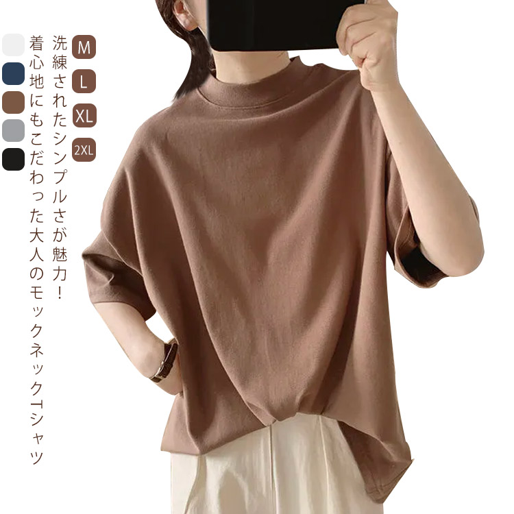 カジュアル 5分袖カットソー モックネック ゆったり ~2レディースファッション トップス シャツ カットソー