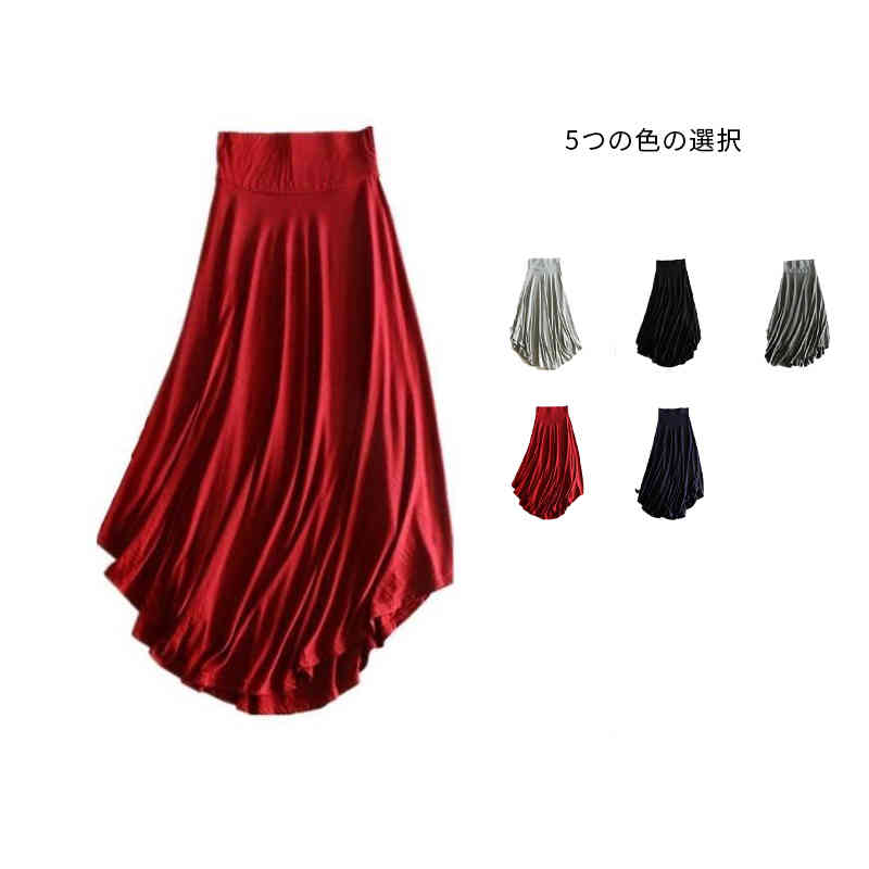 脚長効果 ミモレ丈 ミモレ丈 ロング丈 ロングフレアスカート美脚 フレアスカート 透けにくい ストレッチ