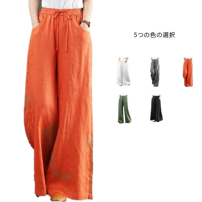 秋 リネン フレアワイドパンツ パンツ ロング レディース 麻 ボトムス 大きめ 春 夏 ワイド おしゃれ 流行 カジュアル シンプル 体型カバー ゆったり リネンパンツ