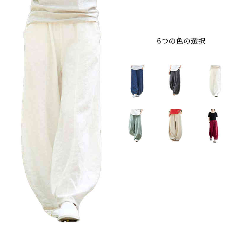 バルーン サマーパンツ リネン パンツ ワイドバンツ おしゃれ ワイド ゆったりシルエット ボトムス シンプル 春 きれいめ 流行 可愛い 夏 カジュアル パンツ 着回し 大人可愛い ゆったり 大きめ