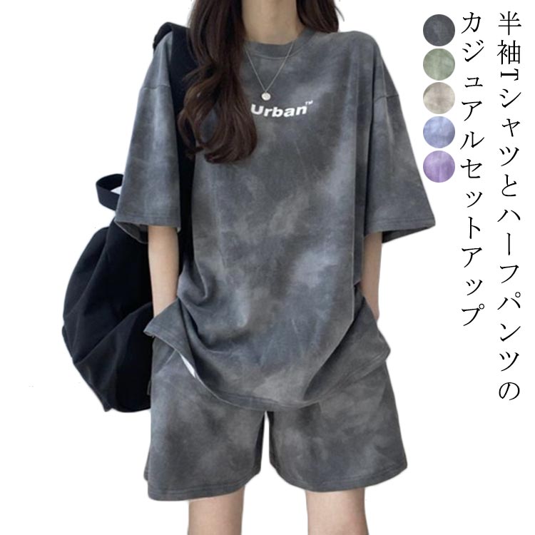 M~3XL カジュアルセットアップ 半袖 短パン カジュアルセットアップレディースファッション トップス Tシャツ カットソー
