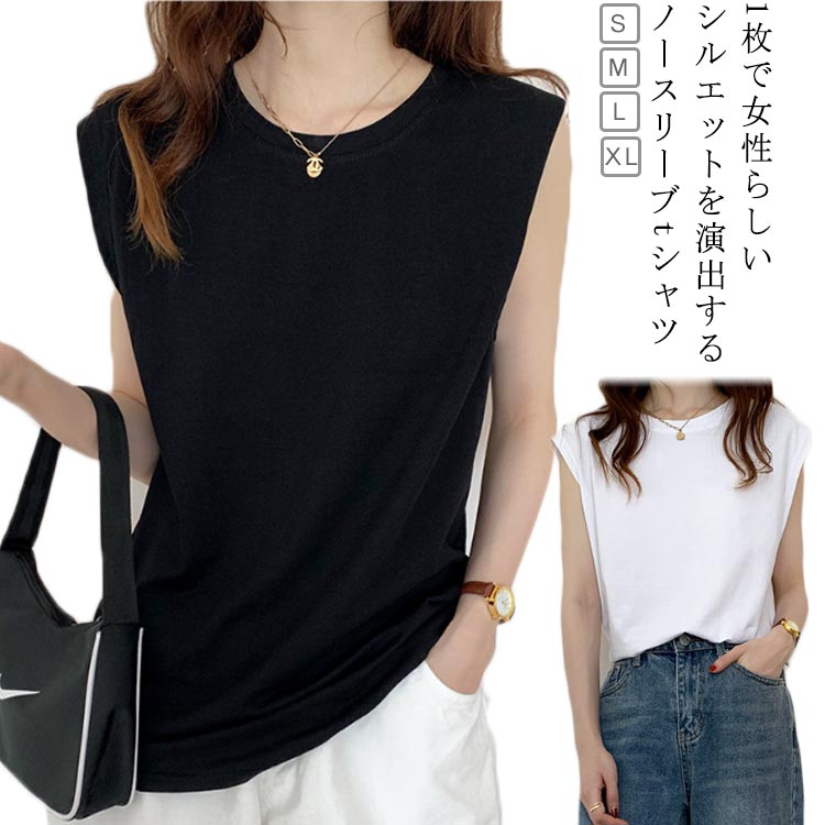 タンクトップレディースTシャツノースリーブUネックロゴプリント