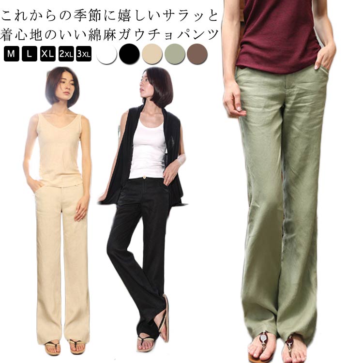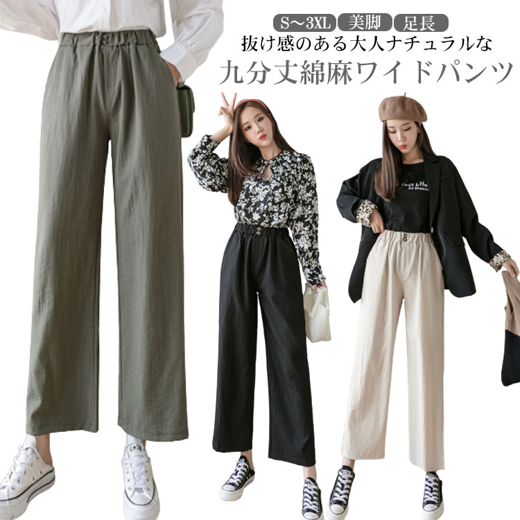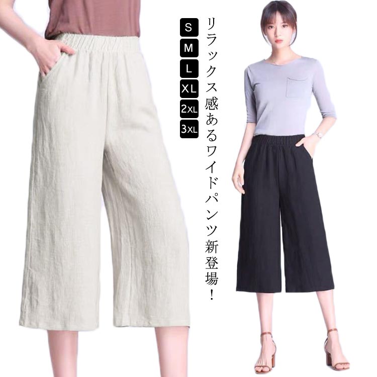薄手 九分丈パンツ ワイドパンツ 綿麻 快適 美脚 S~3XLレディースファッション ボトムス パンツ