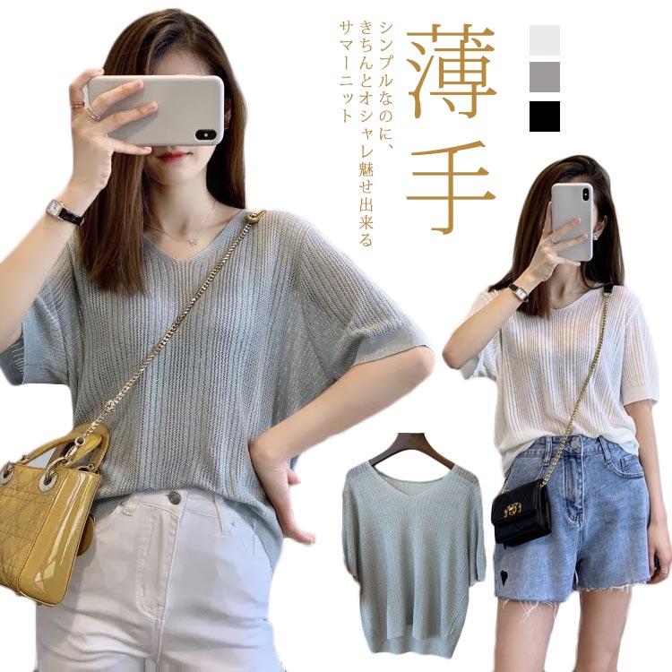 ~2 5分袖 ニットトップス 薄手 着瘦せ 通気 体型カバーレディースファッション トップス シャツ カットソー