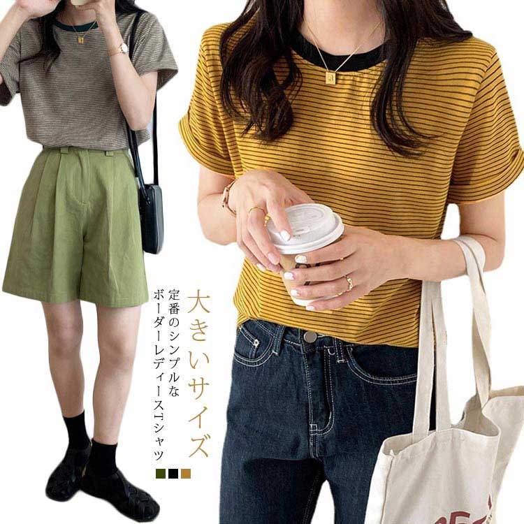S~XL ボーダーtシャツ 半袖 クルーネック カジュア トップスレディースファッション トップス Tシャツ カットソー