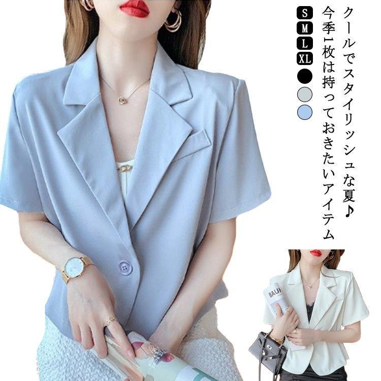 S~XL S~XL テーラードジャケット ショート丈 着瘦せ 半袖レディースファッション コート ジャケット