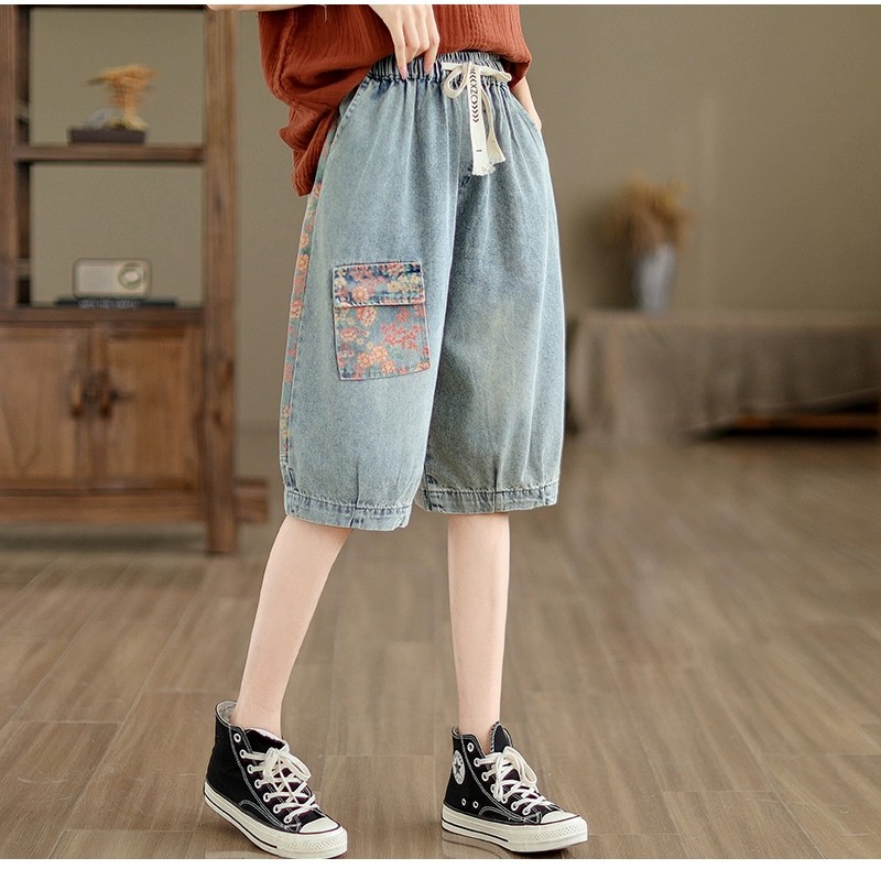 ショートパンツ デニムハーフパンツ パンツ レディース 大きいサイズ 切替え 花柄 ダメージ加工レディースファッション ボトムス パンツ