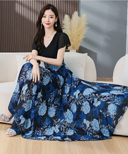 マキシワンピース カジュアルワンピース レディース 半袖 夏 春の大人ガーリーレディースファッション ドレス