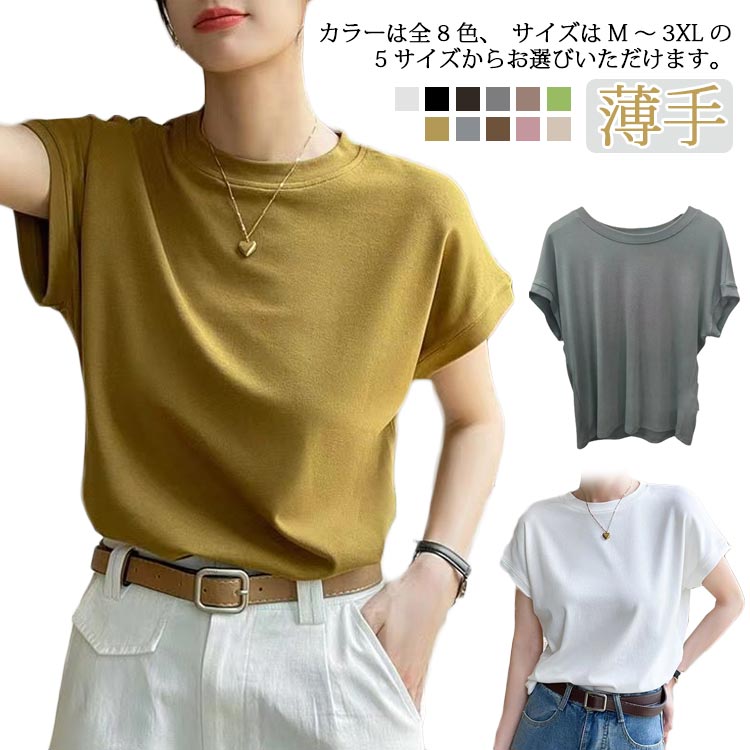 M~3XL 大人女性 tシャツ 薄手 オフィス フレンチスリーブレディースファッション トップス Tシャツ カットソー